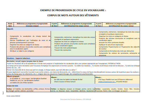 Programmation possible d'un corpus de mots sur le thème des vêtements au cycle 1